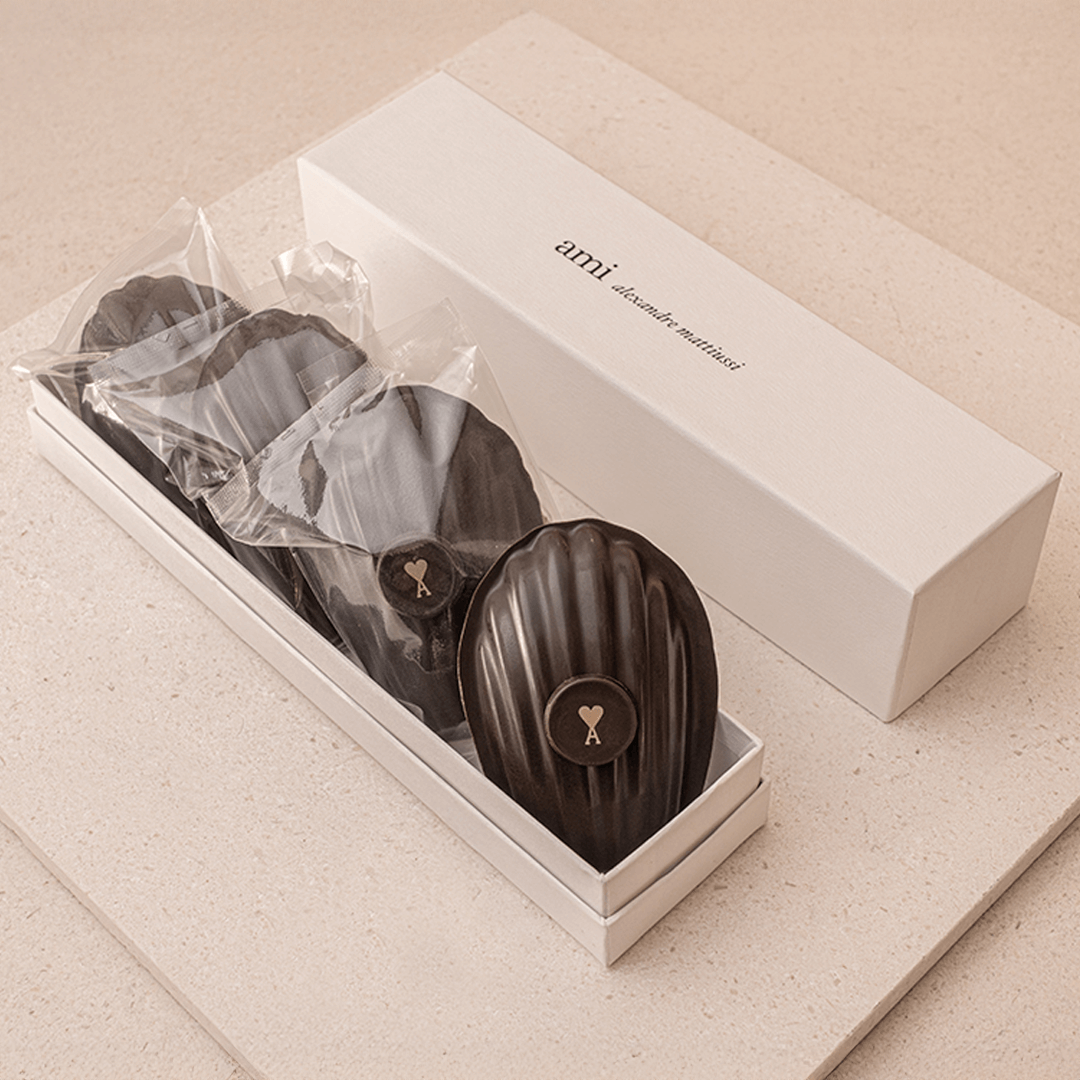丁寧に焼き上げられたマドレーヌは、素材のニュアンスを生かしたやわらかな口当たりと、余韻の残る味わいが特徴。AMI PARIS POP-UP STORE AND LE CAFÉ AMIの空間と呼応するように、パリジャンの暮らしの温度を感じさせる一品として仕上げられている。
