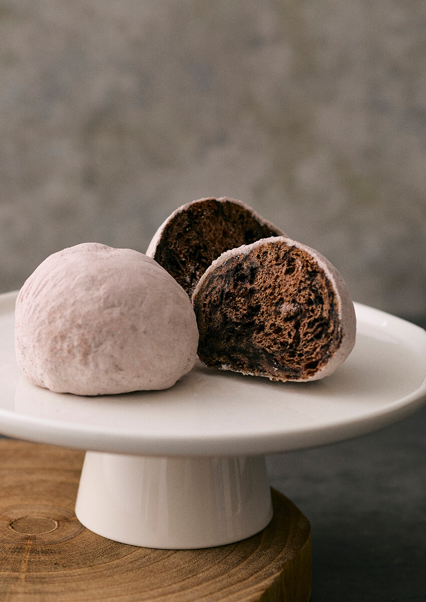「米粉のチョコもちサンド」は、水種粉と米粉を使った生地で、お餅のようなもちもちとした食感を再現した、新食感のチョコパン。“洋”をイメージした「チョコレート」と、“和”をイメージした「お餅」をかけ合わせることで、他にはないコムンオリジナルの商品に仕上げられている。