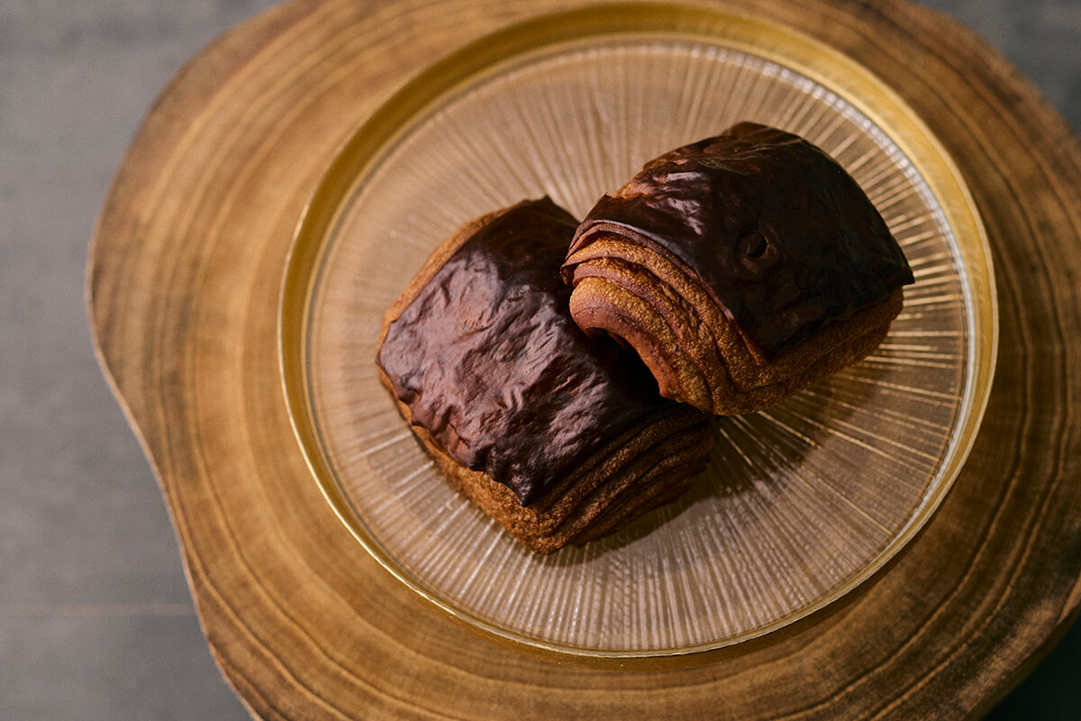 今年からは製法にひと工夫を加え、パン生地そのものにココアパウダーを練り込み、よりカカオの風味をしっかりと感じられるよう仕上げられた。また、生地の層の重ね方を見直し、これまで以上にサクサクとした食感が楽しめる。食べ進めるたびにもう一口食べたくなるような、コムンのこだわりの「パン・オ・ショコラ」。