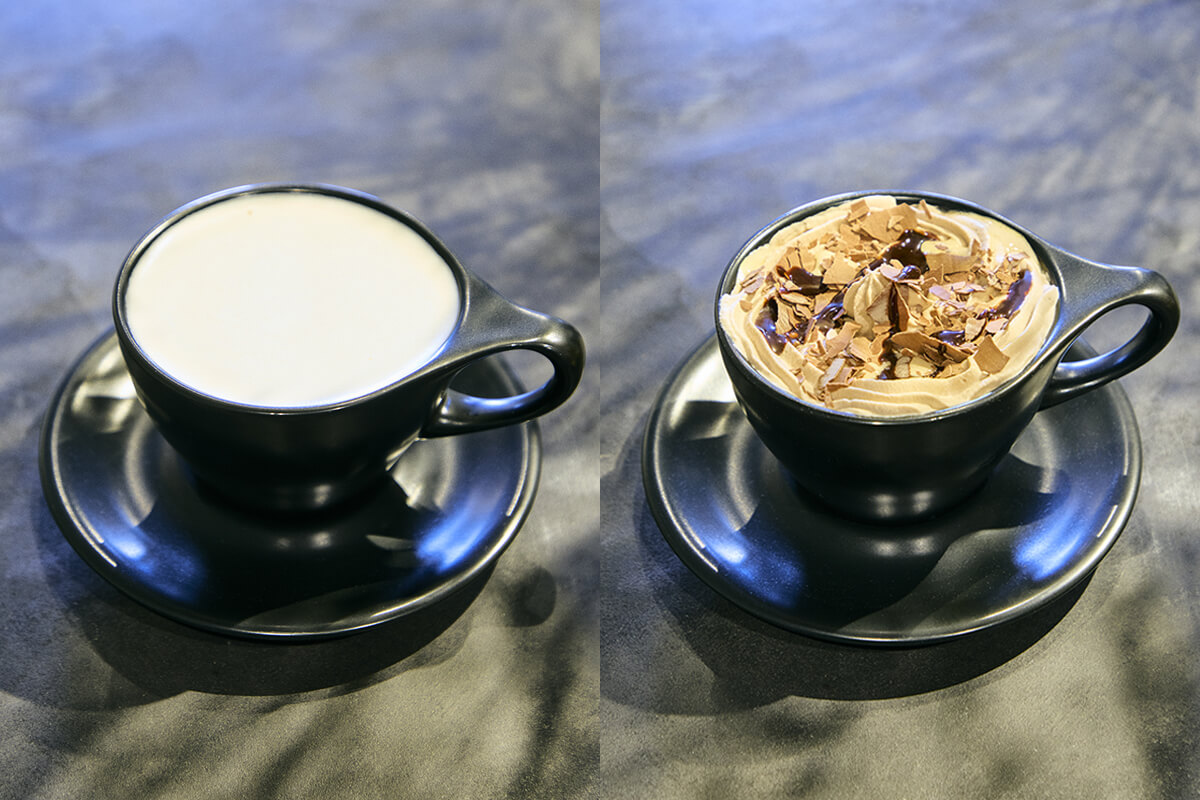 「プラナチャイ」は、スパイスの香りが特徴のプラナチャイに、植物性ながらコクとまろやかさを兼ね備えた豆乳「ボンソイ」を合わせた一杯。一般的な豆乳とは一線を画す、香ばしくクリーミーな味わいで、チャイのスパイスと絶妙に調和。「プレミアムモカ」は、2月限定で展開する特別仕様のカフェモカ。従来のモカに、チョコレートホイップとチョコシェイブをトッピングし、見た目も味わいも贅沢に仕上げられた。甘いものが好きな方におすすめの、満足感のあるドリンク。