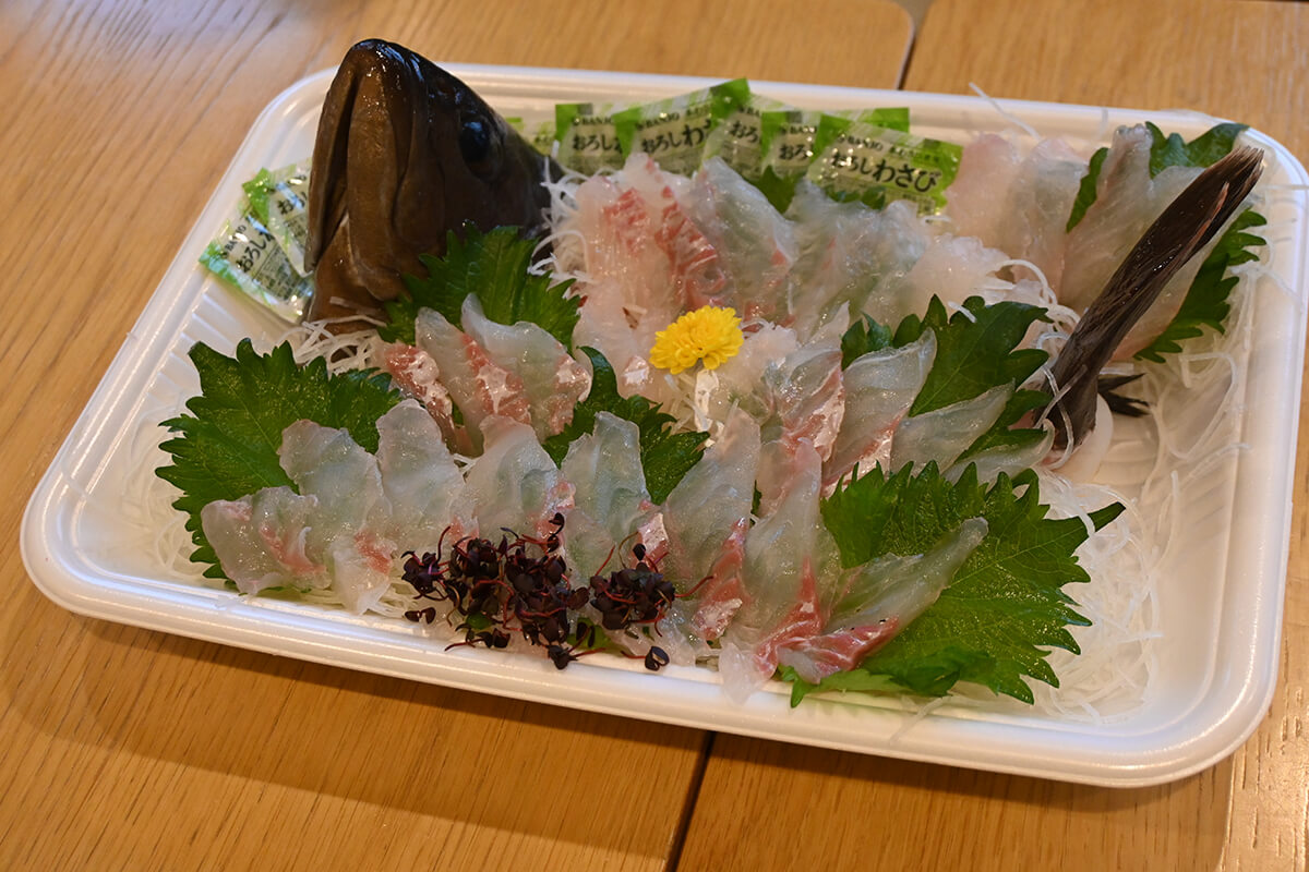 観光施設「UMIKARA」では、マーケットで選んだ魚を、水槽から引き揚げてその場で捌き、食堂で食べられるスタイル。若狭湾の魚を新鮮なまま味わえるのも、魅力のひとつです。
